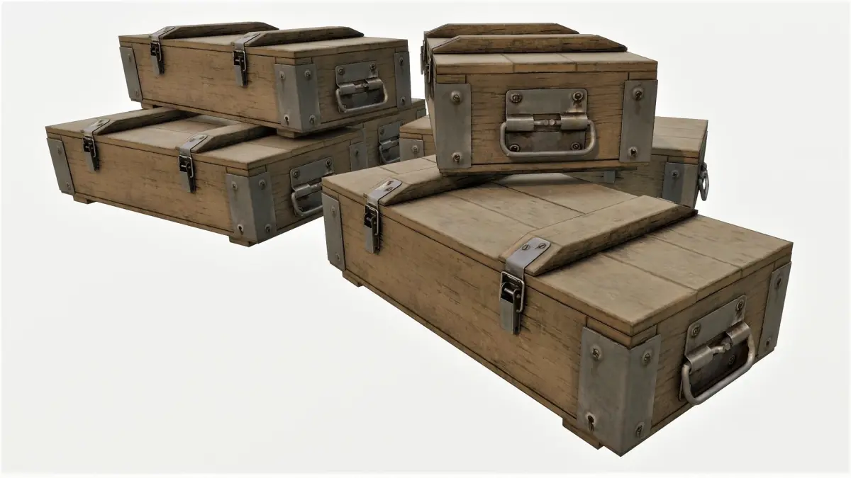 Very Detailed Low Poly Ammunition Wood Crates, with High-Quality PBR Textures.