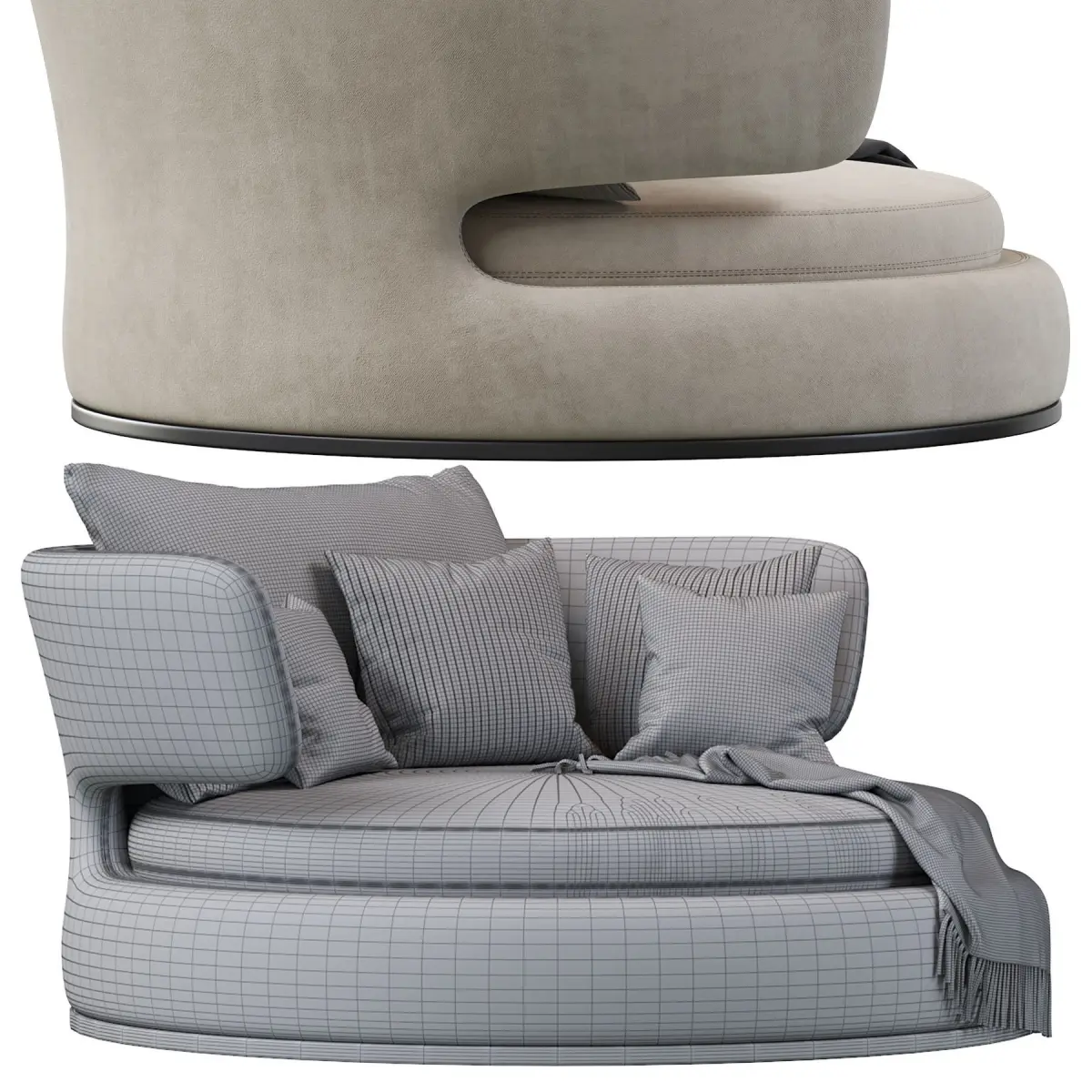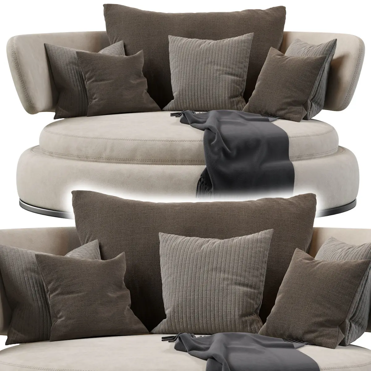 Amoenus Soft Swivel Sofa, designed by Antonio Citterio for Maxalto, is a circular and rotating sofa with a strong personality offering great comfort. It can be used in the middle of the room as a showpiece.