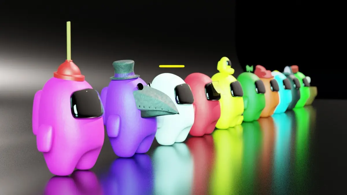 This is a pack of 10 different among us characters with different hats and one dead body model. this pack is perfectly modeled, remeshed, textured and rigged