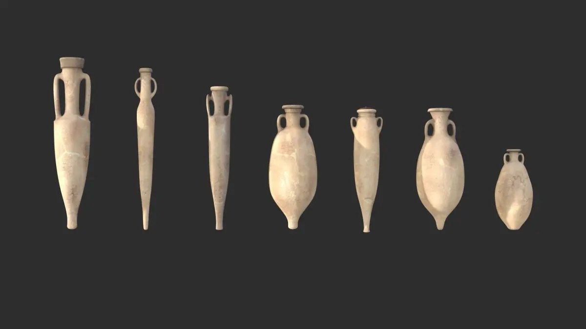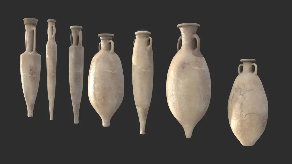 The collection includes 3 broken amphoras variants and also 3 pre-assembled assets with ropes.