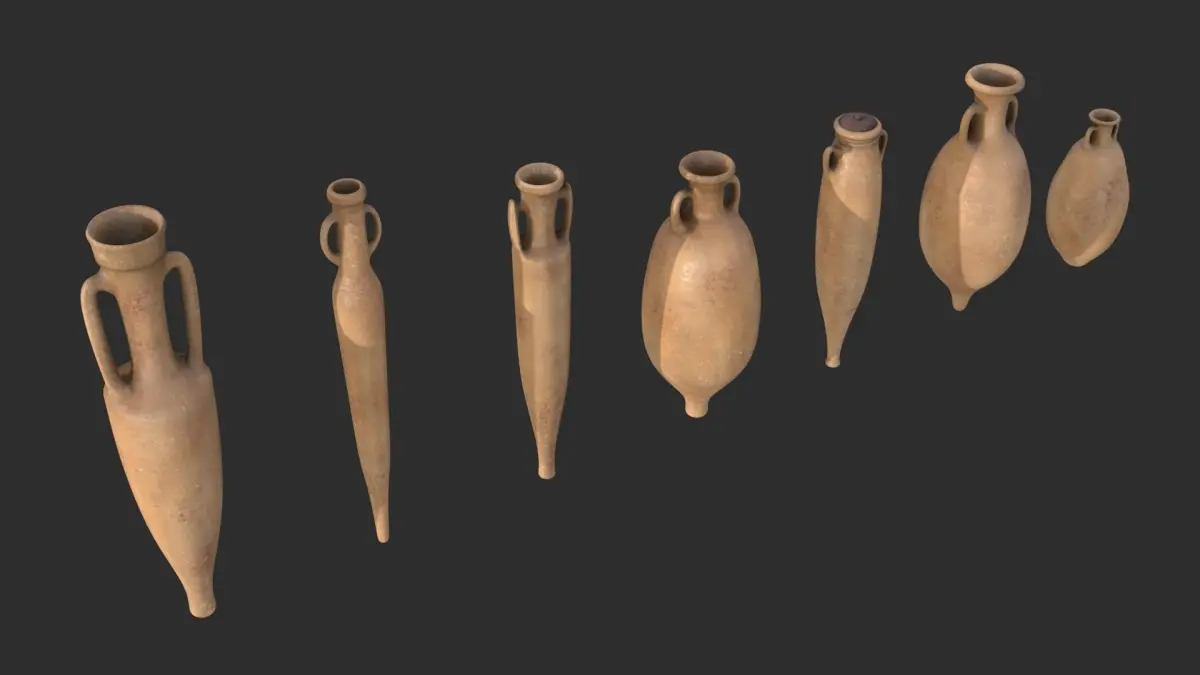 The collection includes 3 broken amphoras variants and also 3 pre-assembled assets with ropes.