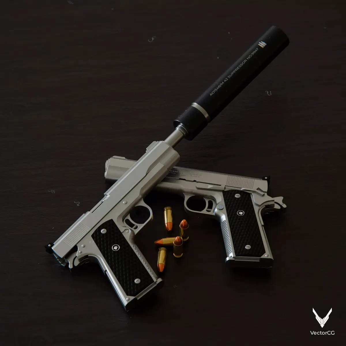 IncludesFull pistol, suppressor, and bullet as separate objectsFlexible for use in FPS games, cinematics, asset packs, or weapon kits