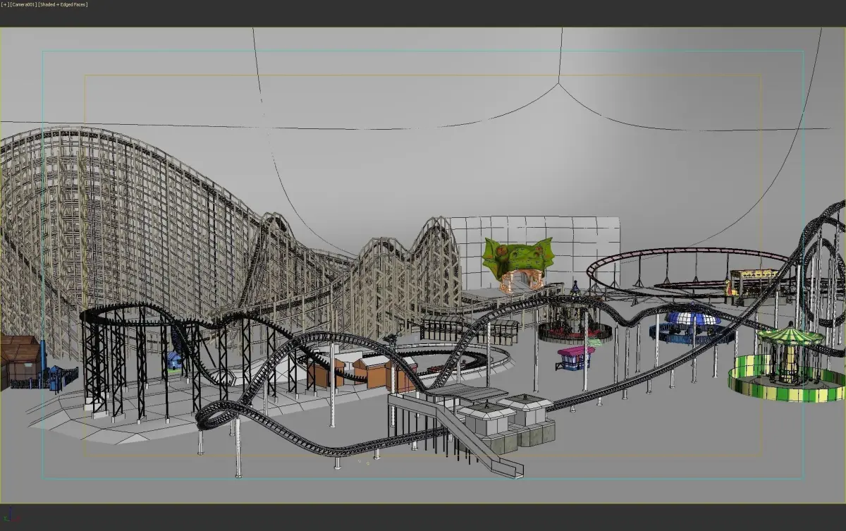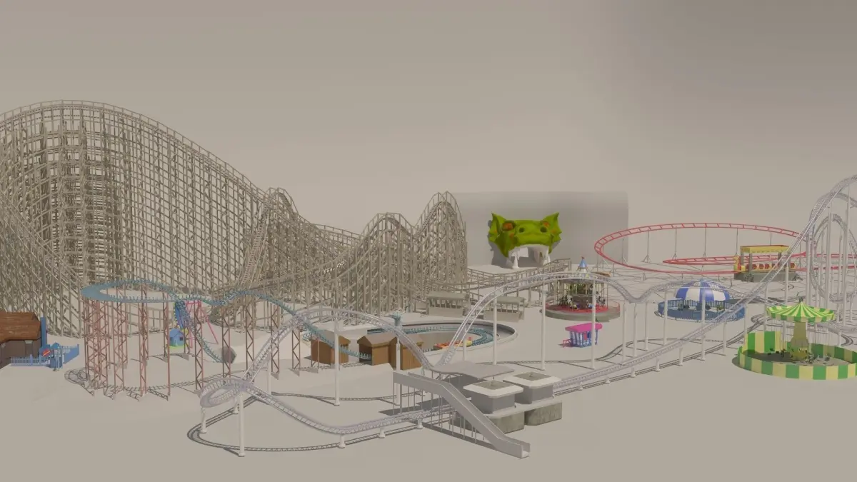 Amusement park 3D model. Roller coasters, attractions, carousels and more!