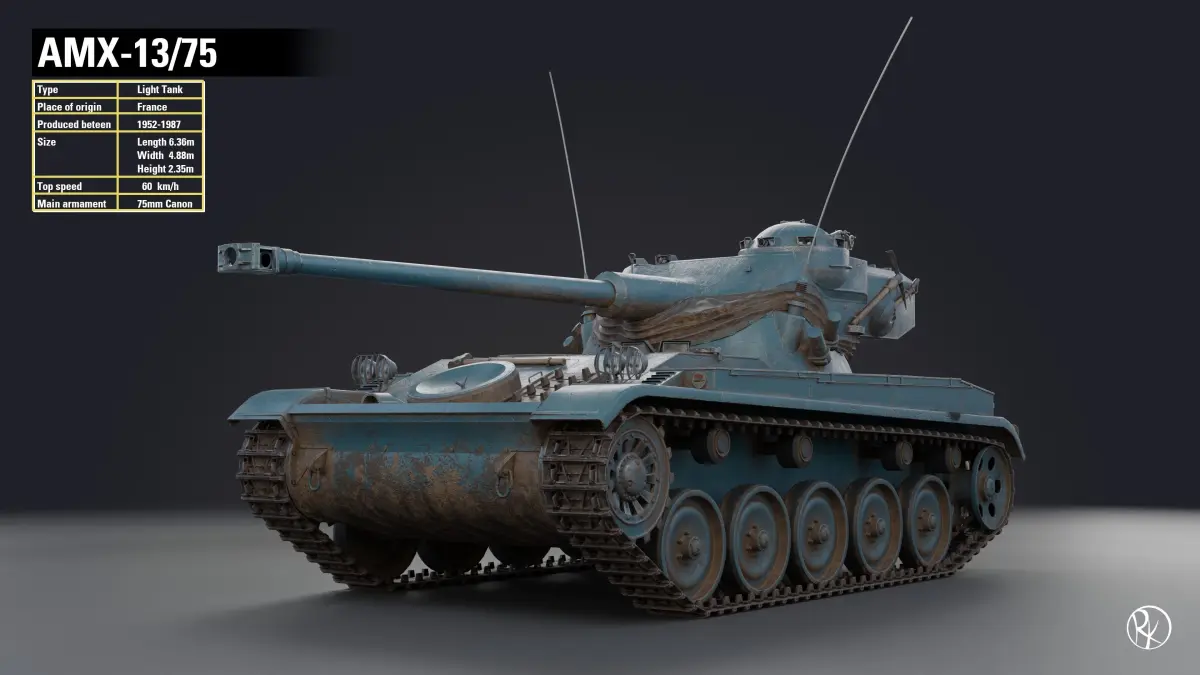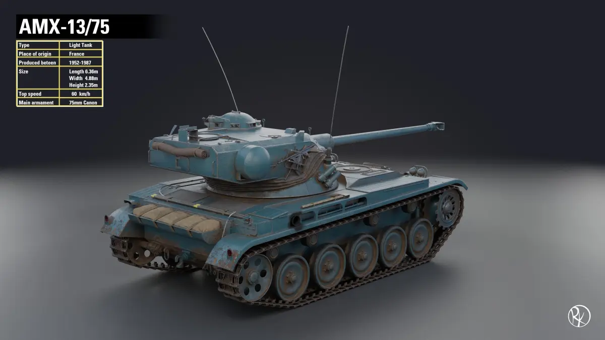 Being carefully crafted with realism and performance optimization in mind, this model will definitely help you to enhance your project and get the most out of your renders and animations.The „AMX-13/75“ is a light tank, produced by Atelier de Construction Ronne in France from 1952-1987.