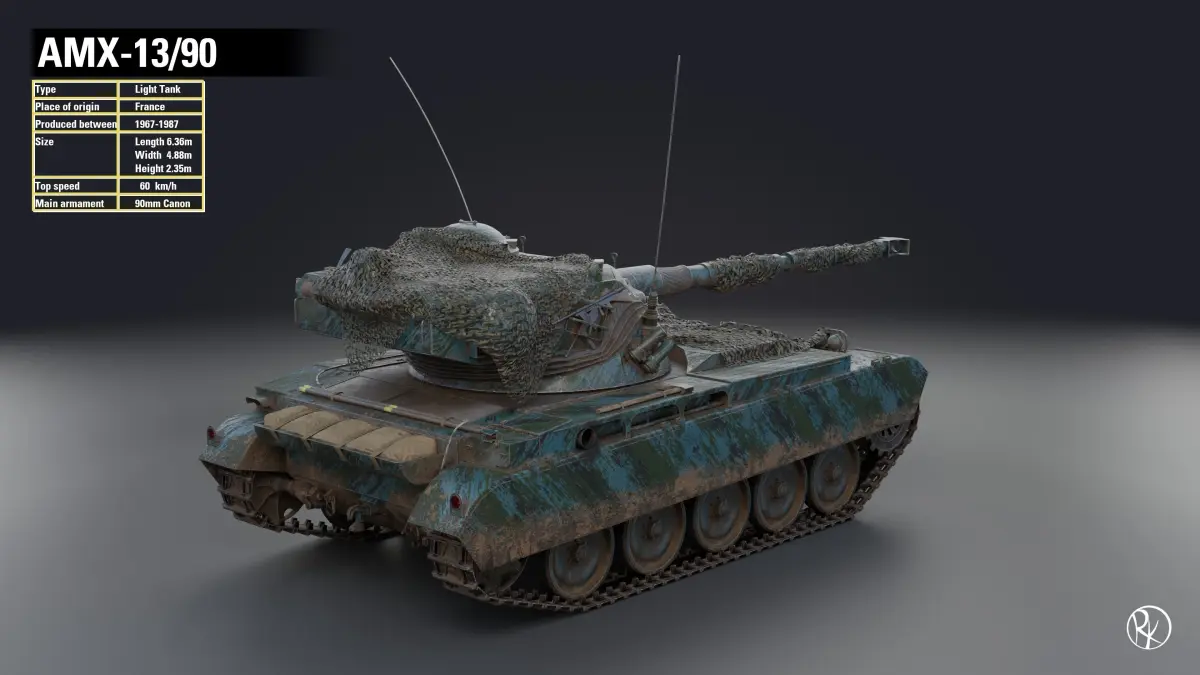 Being carefully crafted with realism and performance optimization in mind, this model will definitely help you to enhance your project and get the most out of your renders and animations.The „AMX-13/90“ is a light tank, produced by Atelier de Construction Ronne in France from 1967-1987.
