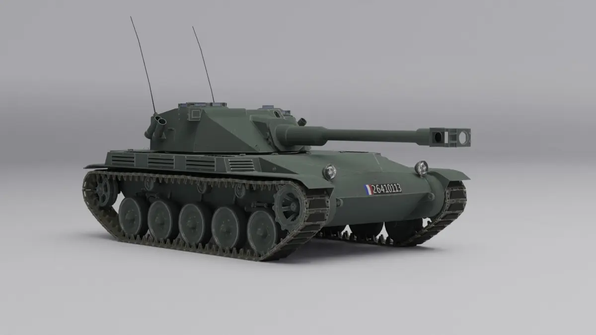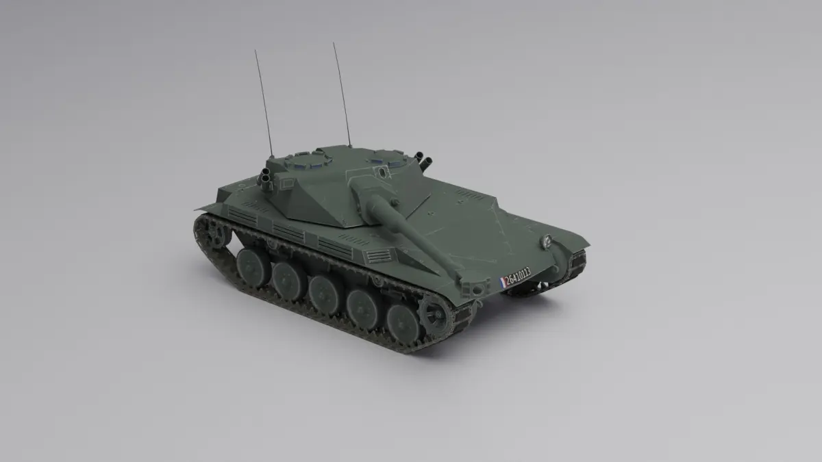 Detailed replica of AMX ELC Bis light tank. This model was based on the only existing example of this prototype tank which you can find in Musée des Blindés in France. Being based on the real thing, it also includes real license plate placed on the upper front plate.