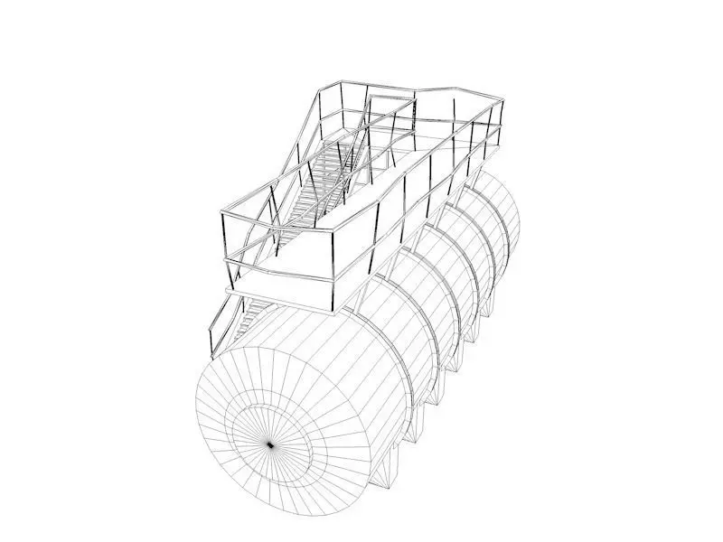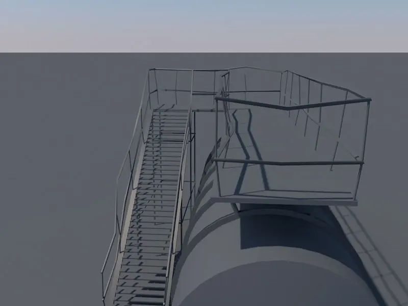 A simple oil tank with a platform ontop. Not textured Low poly game readyPictures with Wireframe and withoutcontaining files:.3ds - .obj - .fbx - .dae