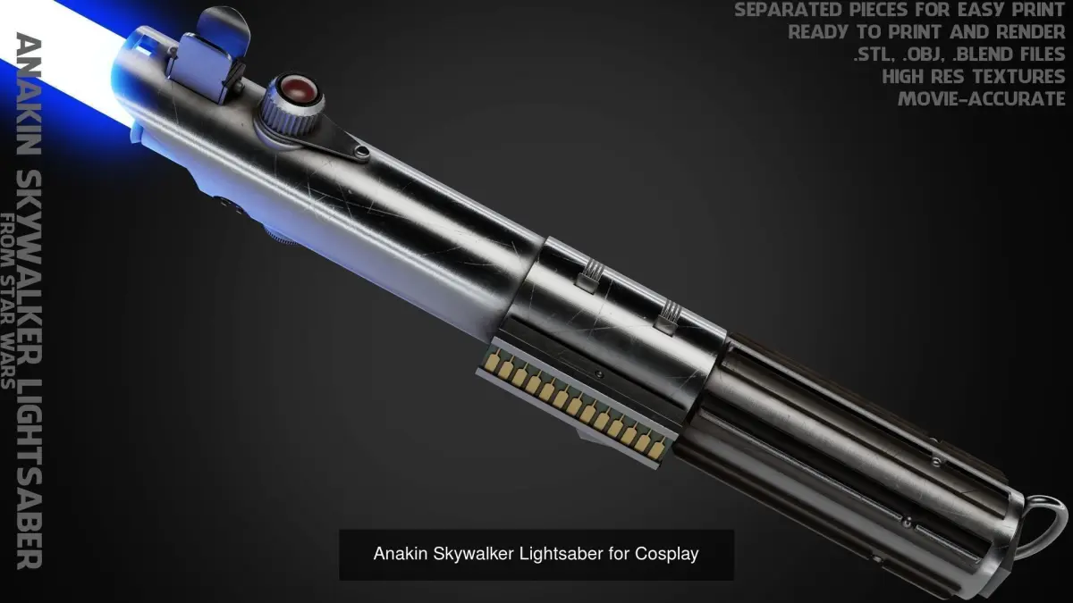 - High Poly Stl of the lightsaber separated in multiple pieces for easy printing and painting