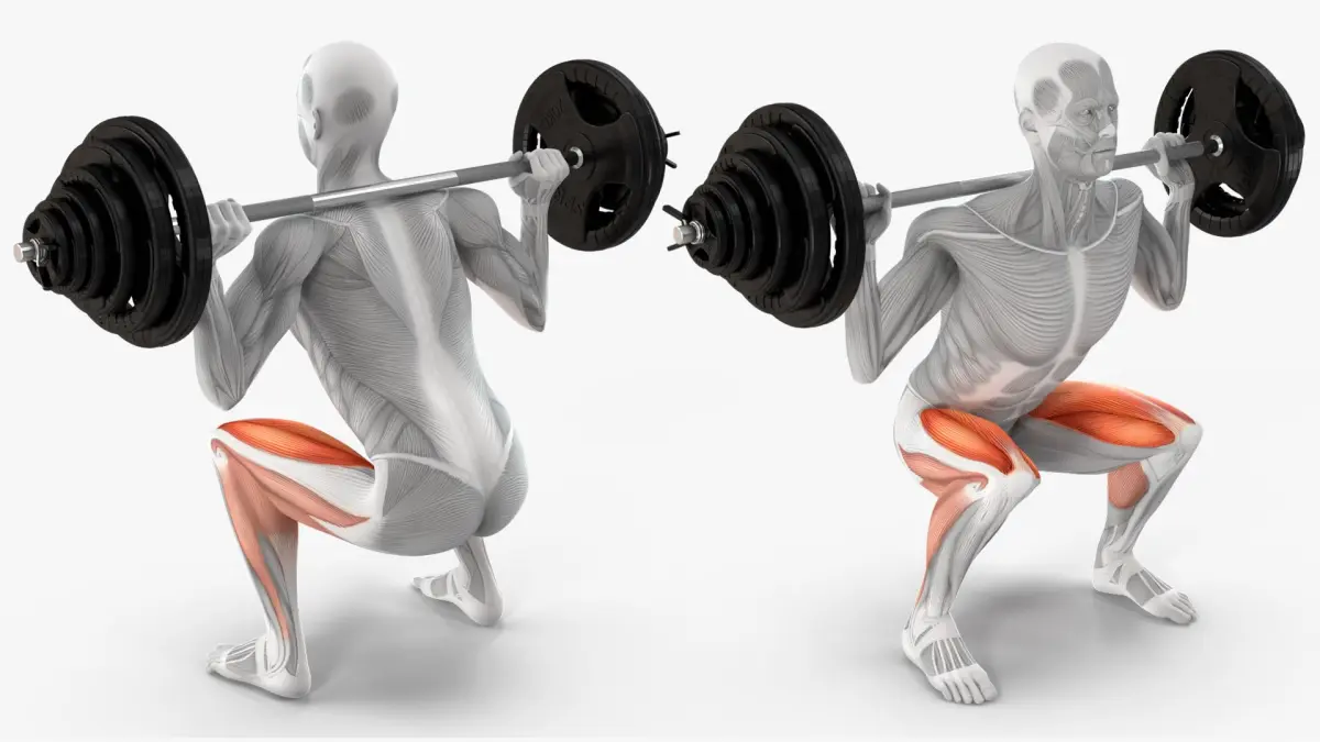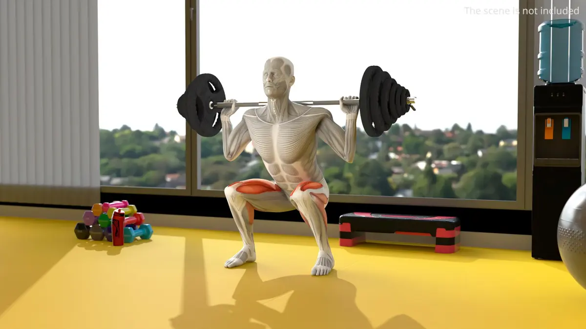 Anatomy Male Muscular System Squats Animated Rigged is a three-dimensional model of muscular human figure engaging in a weightlifting activity.
