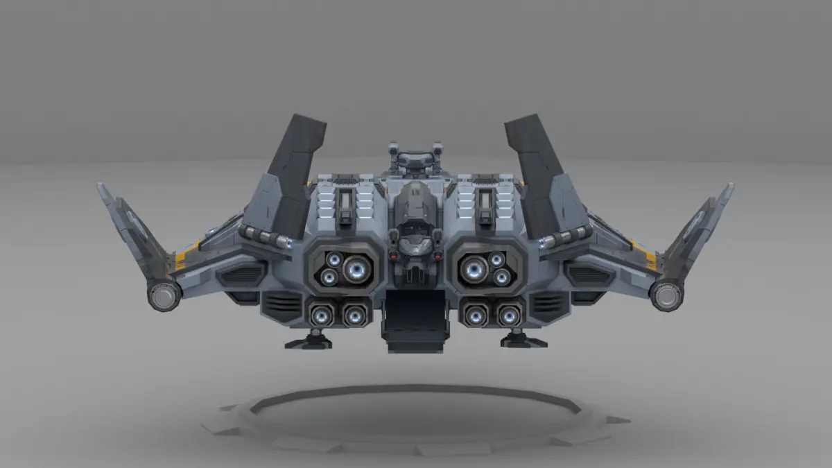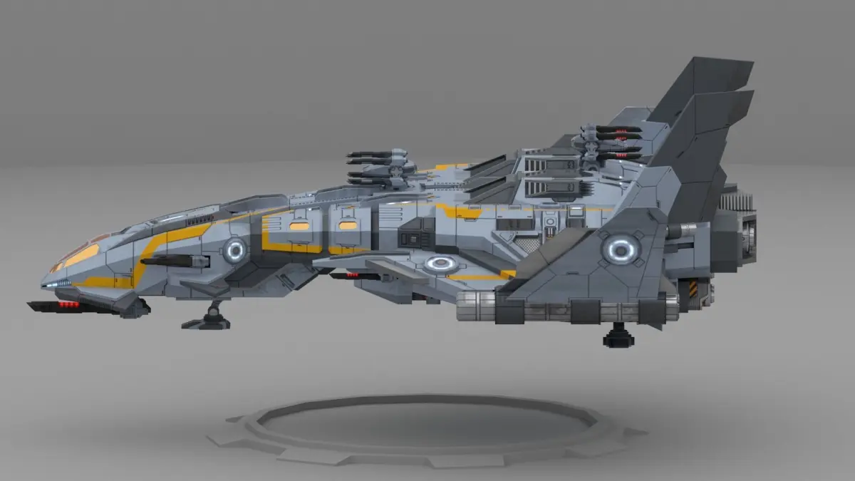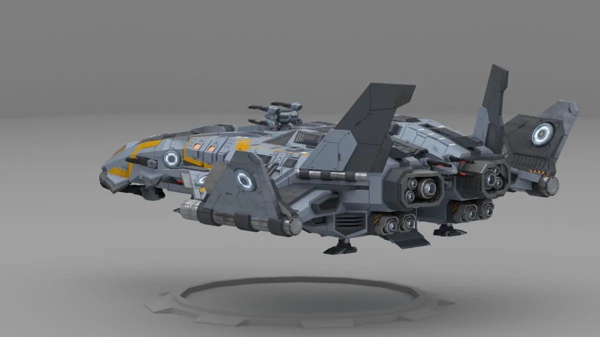 Anca is a high detail low-poly model which has interior rooms such cockpit, control, living quarters, and a cargo bay. It have 2 turrets containing 4 laser canons. Rear turret can slide to a locked position during landing and it has wide angle POV for combat situations. Turrets can be controlled by 2 other crew members and pilot is controlling 5 more laser canons. All entry and exit points of the ship is animated including landing gears, wing spans and missile hatches.