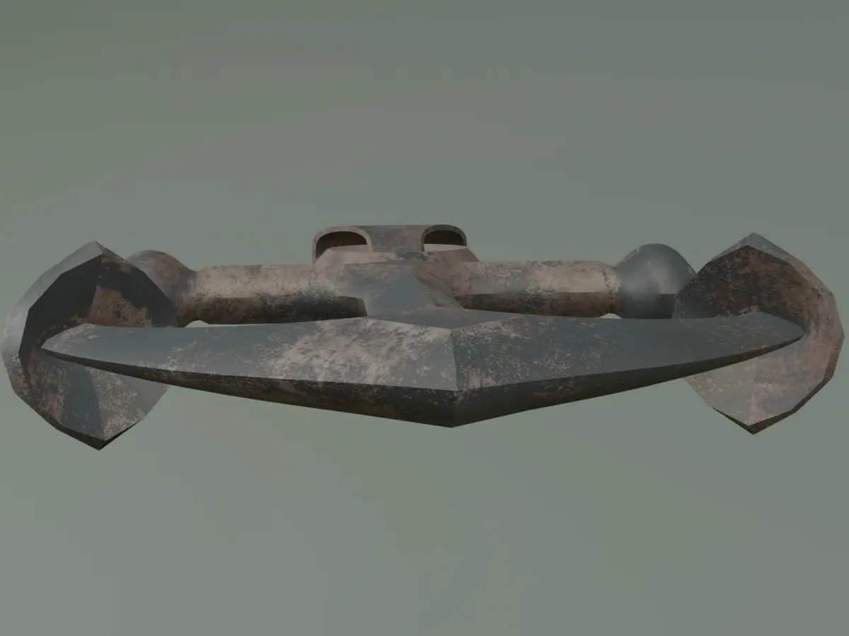 A heavy object attached to a cable or chain and used to moor a ship to the sea bottom, typically having a metal shank with a pair of curved, barbed flukes at one end.