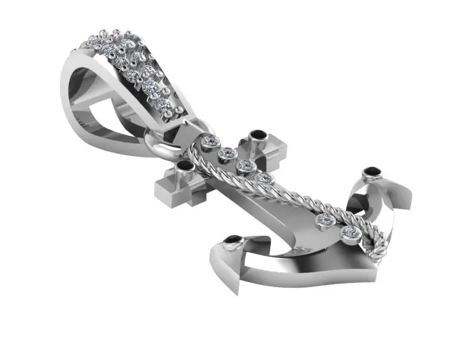 This striking gold anchor pendant fuses nautical charm with refined luxury. Featuring a meticulously sculpted anchor form, the piece is accented with a twisted rope detail running down the shaft, symbolizing strength and steadfastness. Brilliant white and black gemstones are strategically placed to highlight key design elements, including the flukes and shaft, while the bail is encrusted with multiple dazzling diamonds for added brilliance. This pendant is a perfect blend of marine inspiration and upscale elegance, making it ideal for sailors, adventurers, or anyone who values resilience and direction in life.