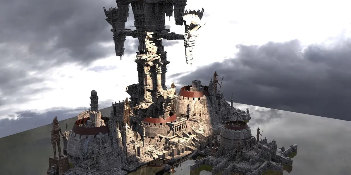 HomeCatalogAncient Aztec pyramid ship 3 with Egyptian city 3D model