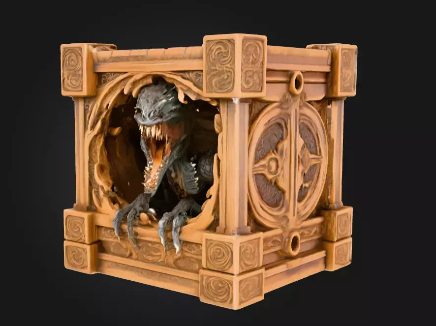 The Ancient Beast Prison 3D model is an awe-inspiring digital asset that fuses dark fantasy storytelling with masterful craftsmanship. It depicts a ferocious creature breaking free from an ornate, ancient containment cube, creating a dramatic centerpiece perfect for fantasy RPGs, horror games, cinematic sequences, or collectible 3D printing. Every element of the model—from the beast’s razor-sharp teeth to the intricate carvings of the wooden-like prison—has been sculpted and textured with exceptional detail and realism.