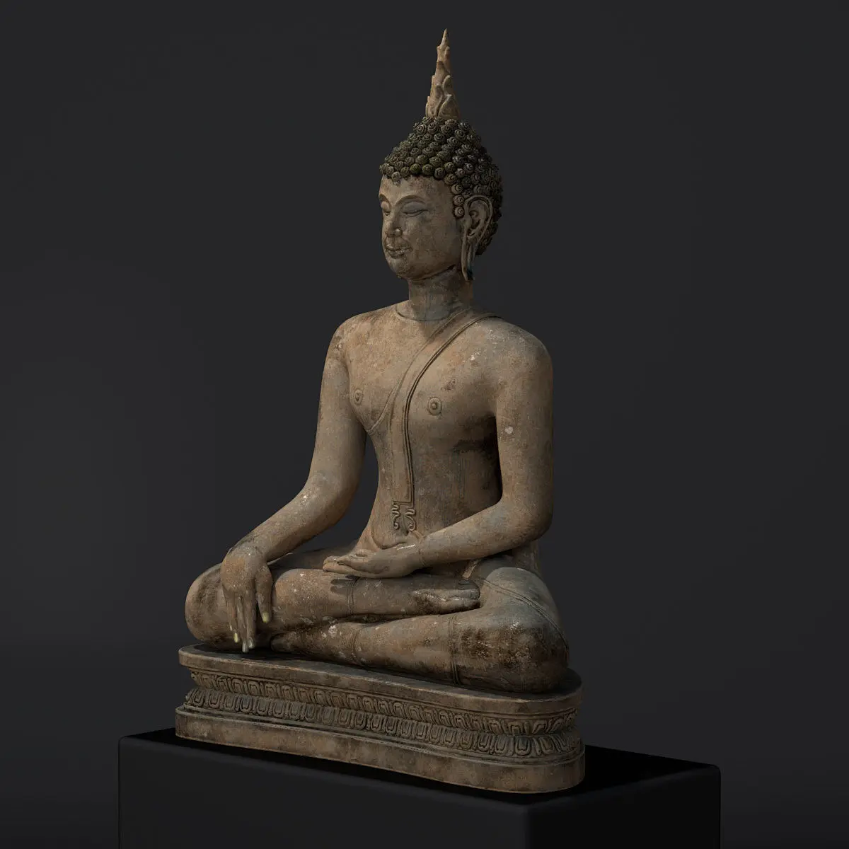 Very accurate 3D model of an old statue of Buddha. Enjoy the fantastic details of this sculpture! The very best you can find! Rendered in Blender 2.8 with Cycles with an old stone material and high resolution textures (4096x4096), for very detailed photorealistic renderings. It can also be rendered in realtime as you can see in the turntable! This model is exported in .3ds, .fbx, .dae and .obj. Materials and only works in Blender, but textures are still usefull in other formats.