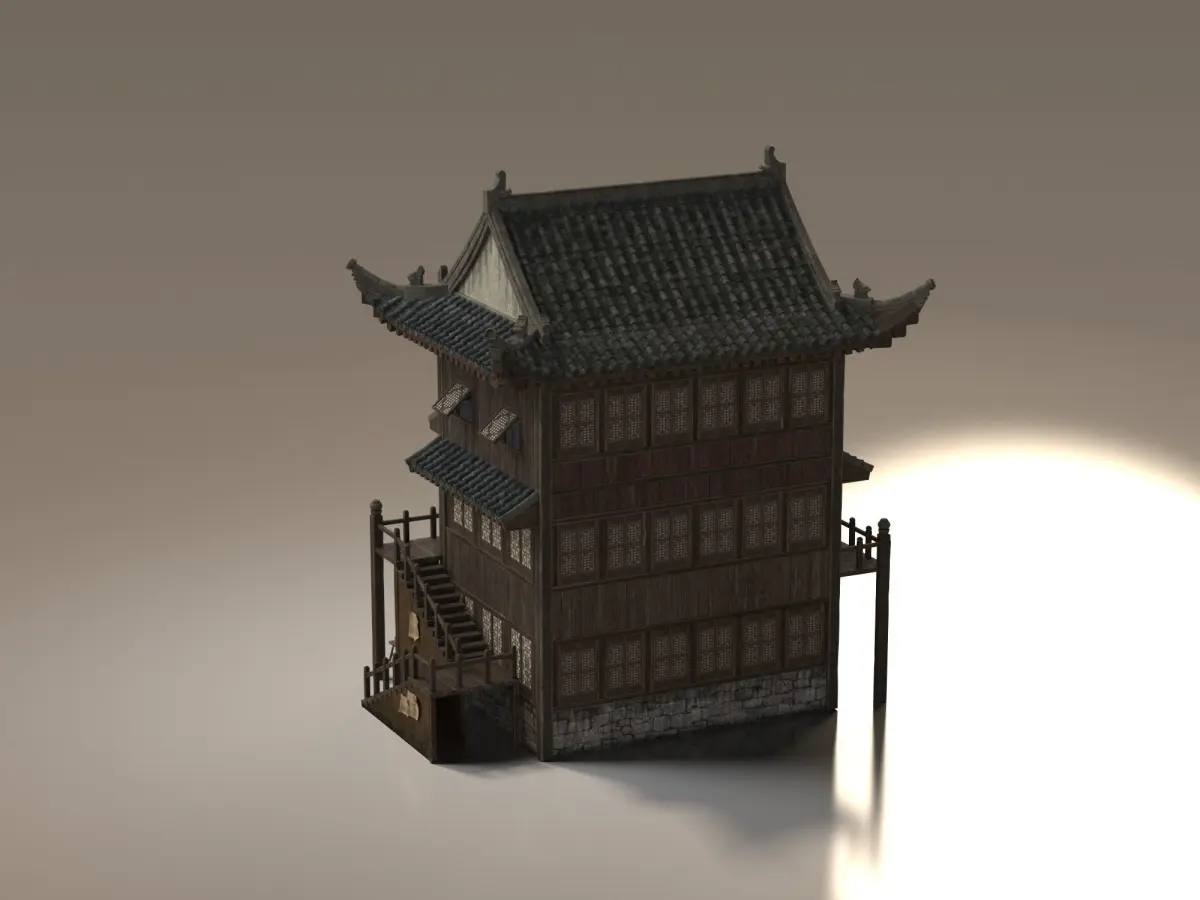 Ancient buildingsChinese ancient restaurantsTiles WallLanternscontains a variety of architectural elementsThe details are richThe texture map is complete