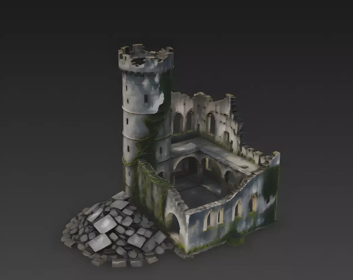 The Overall Concept This asset is a destroyed section of an ancient stone castle. It represents a forgotten fortress that has been abandoned for centuries, making it a perfect set piece for fantasy adventures or historical battlegrounds.