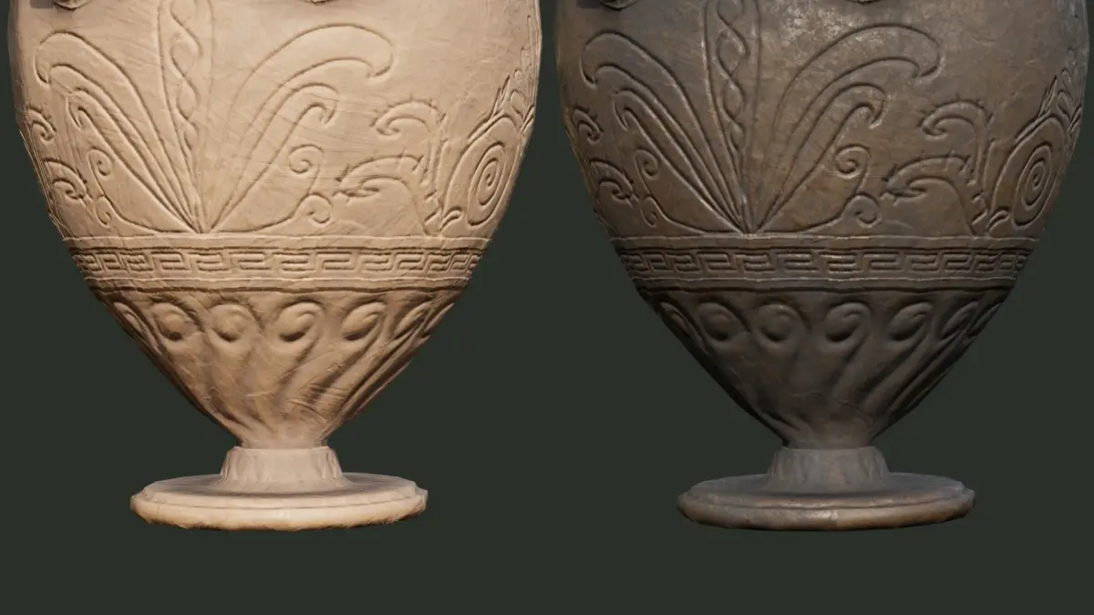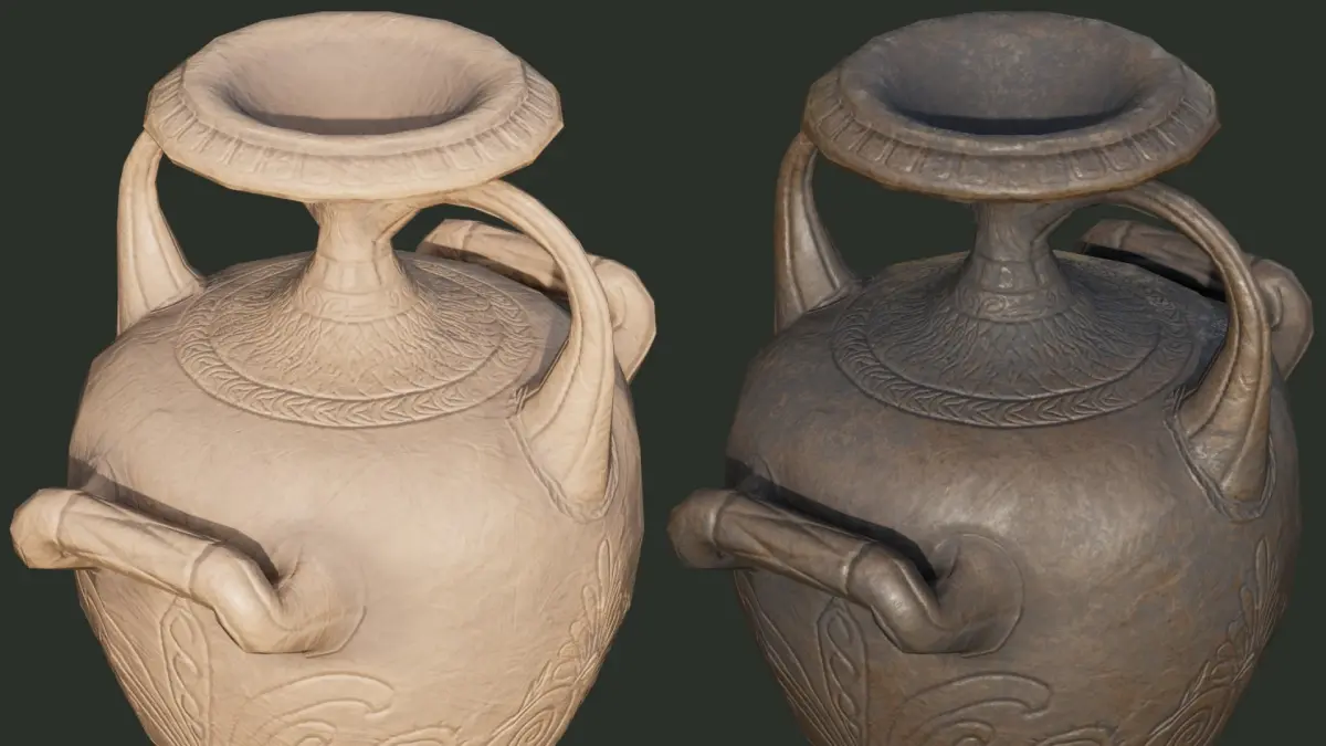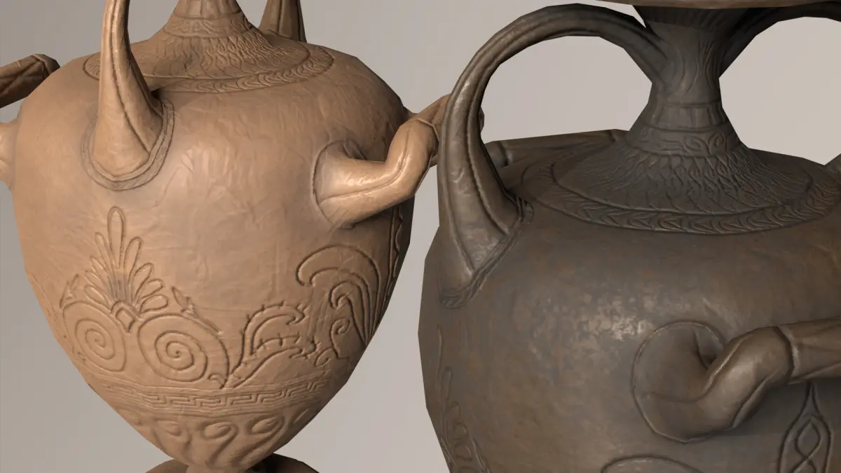 3D game ready models of antique and rare ceramic, dusty clay dishes, vases, jugs, flowerpots, amphorae, earthenware.