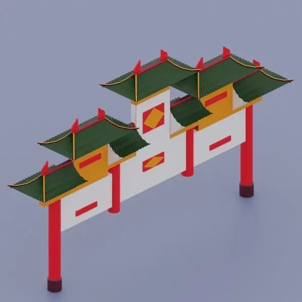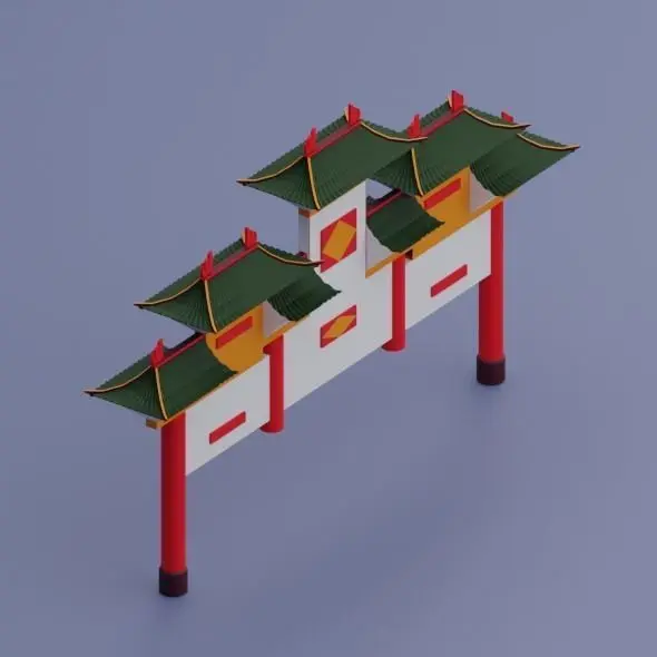 Low Poly Ancient Chinese Entrance 3d model. Model was created in Blender 2.82