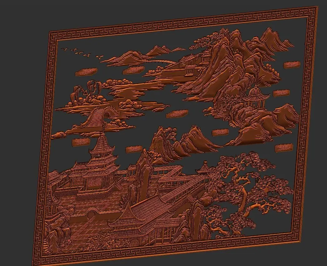 ancient Chinese painting of bas-relief ready for CNC Router Carving or 3d printer.OBJ,STL format.