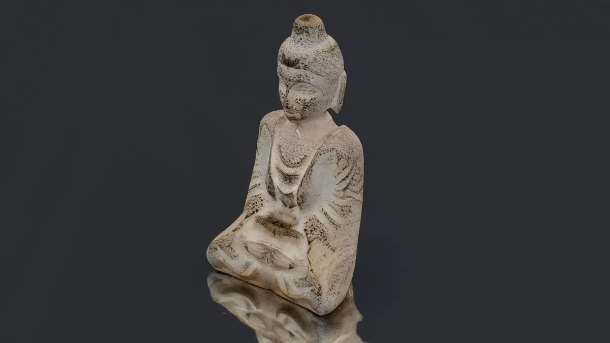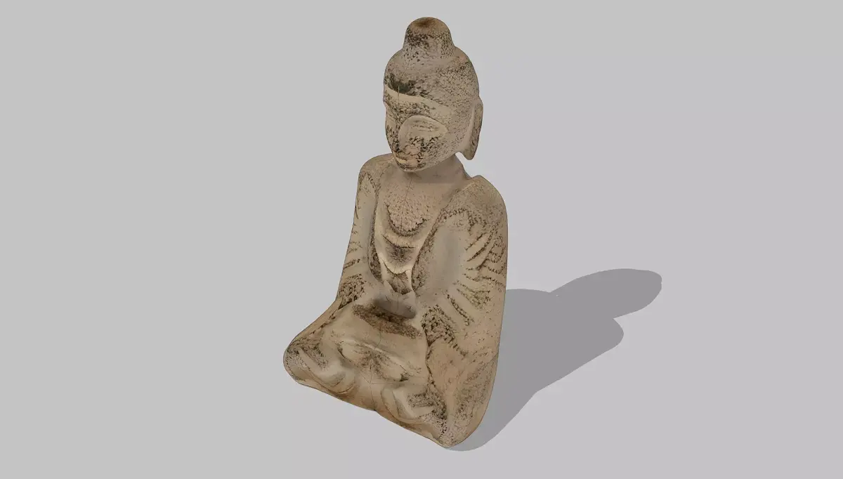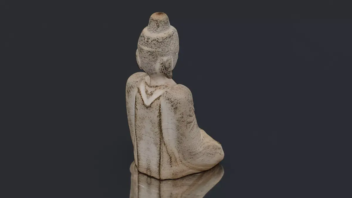 This captivating 3D low-poly model portrays an ancient Chinese-style Buddha statue in a meditative lotus pose, exuding timeless serenity and spiritual depth. Crafted with weathered, crackled textures in earthy beige tones, the figure sits gracefully with closed eyes and a subtle ushnisha atop its head, reflecting on a dark glossy surface that adds a sense of introspection and antiquity. This minimalist digital rendition honors traditional Buddhist iconography while lending itself to modern applications in animation, virtual environments, or cultural heritage visualizations.