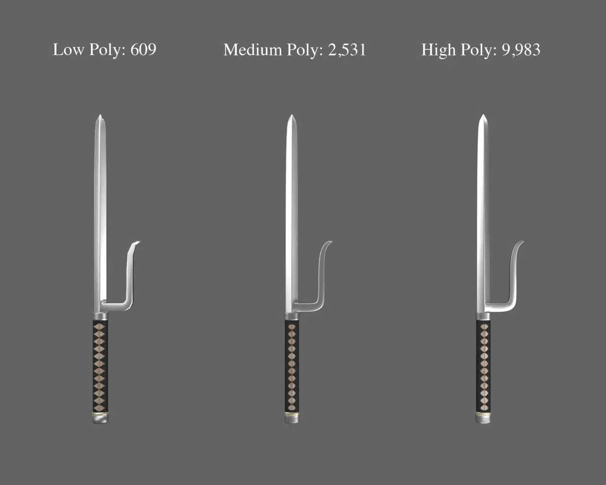 This Collection Set offers 11 unique Ancient weapons all in the same aesthetic Japanese style. Each weapon includes 3 Polygon levels; High Poly, Medium Poly, and Low Poly. These models can be purchased separately. These models may be included in other collections for a different price.