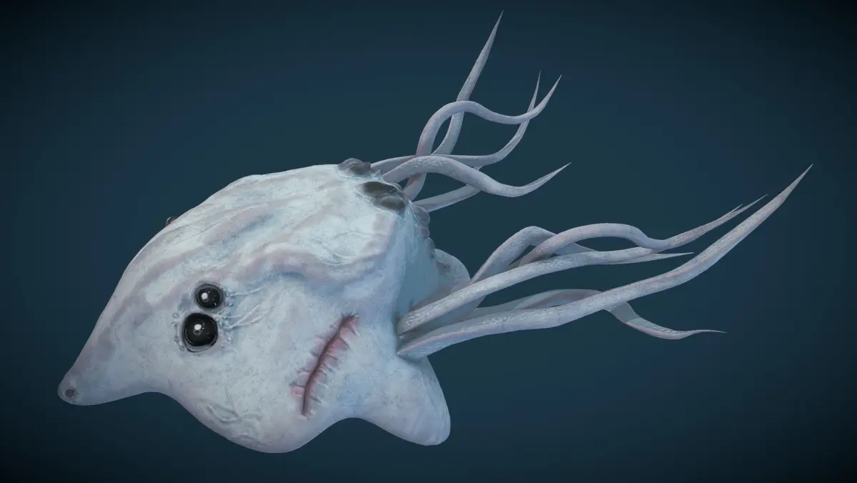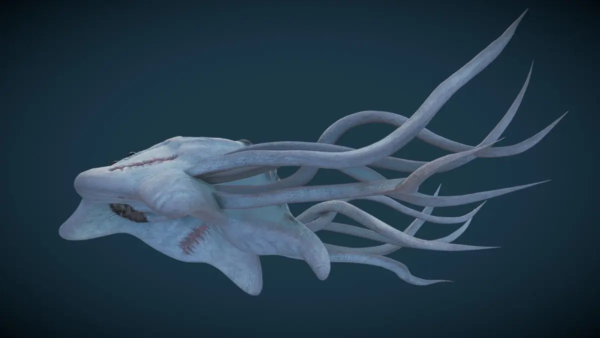 This Ancient Deep Sea Creature I imagined and built. This is a marine predator, a cross between a shark and an octopus.They are 0.9m to 1m long, killing their prey by squeeze or stab their prey with their venomous tentacless or biting their prey with a super strong bite force. These poisonous tentacles are super hard and with fixed skeletons.
