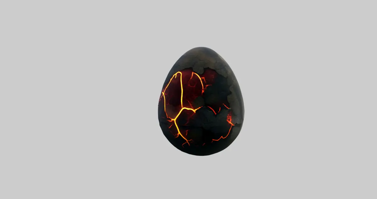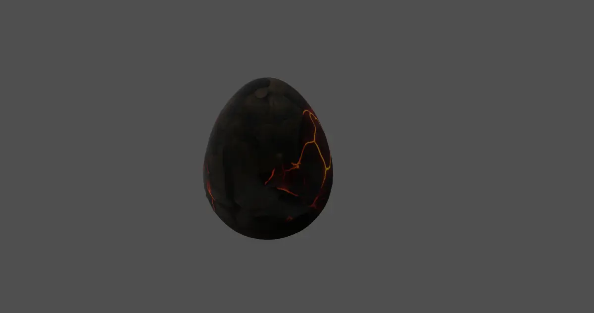 Designed with precision, this model captures the essence of an egg that is about to hatch, radiating an intense heat from within. The detailed texture maps simulate the contrast between the rugged, dark rock and the bright, fiery glow, creating an immersive visual effect. The cracks and molten fissures suggest that something powerful lies inside, waiting to emerge.