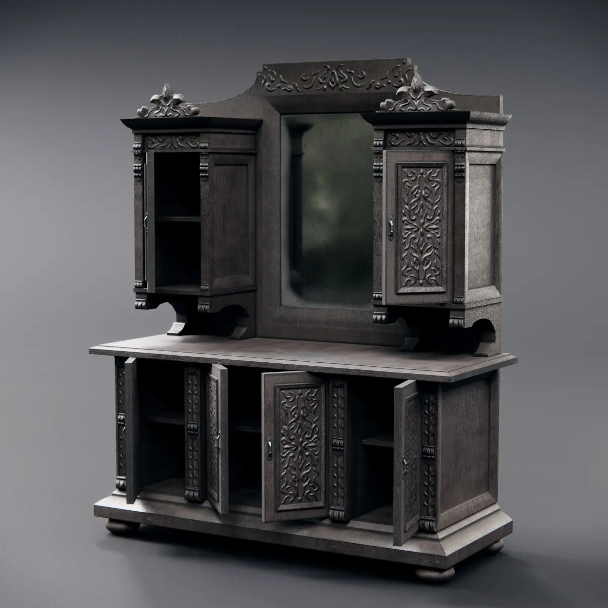 this dresser was modeled with subdivison in mind but still has a fairly low poly count and has a PBR material with baked 8K textures. it has a userfriendly easy to use rig for opening the doors. all textures are packed into the .blend formats but can also be downloaded manually if wanted.