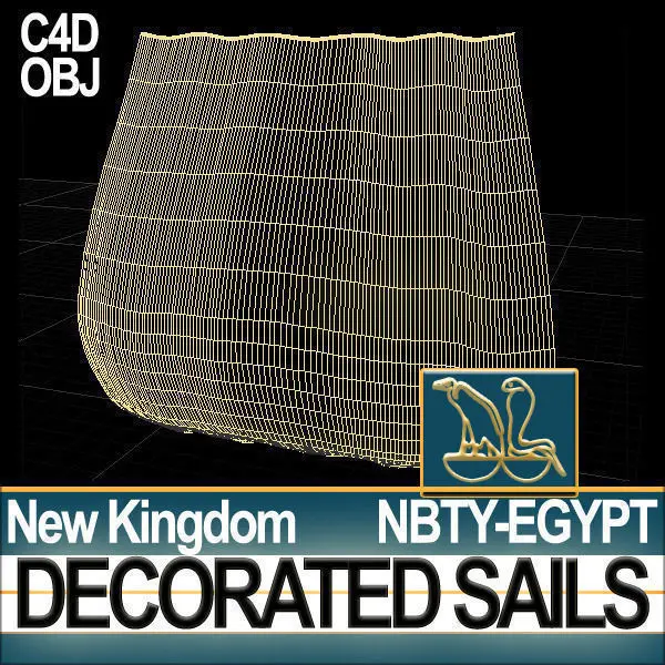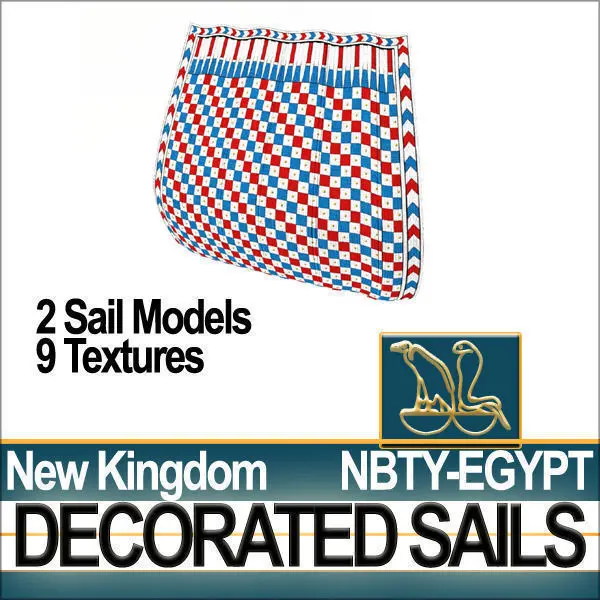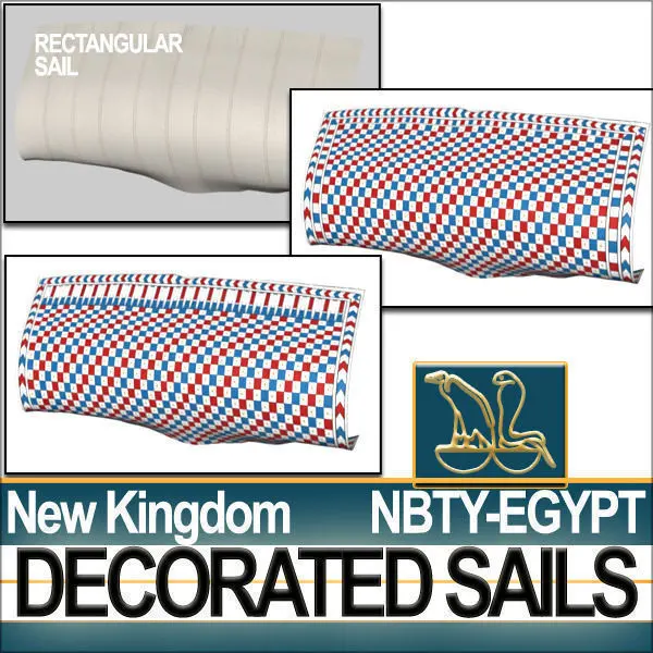 Ancient Egyptian New Kingdom Real Decorated Sails Models and 9 Hi-DEF UV Maps textures with Original Typical NK Egyptian Decoration Patterns and Linen Shader. C4D, VUE6 to12 , 3DS, OBJ!______________________________________________To be used with CgTrader Product ID 74822 [Ancient Egypt Pharaoh Royal Ship New ]