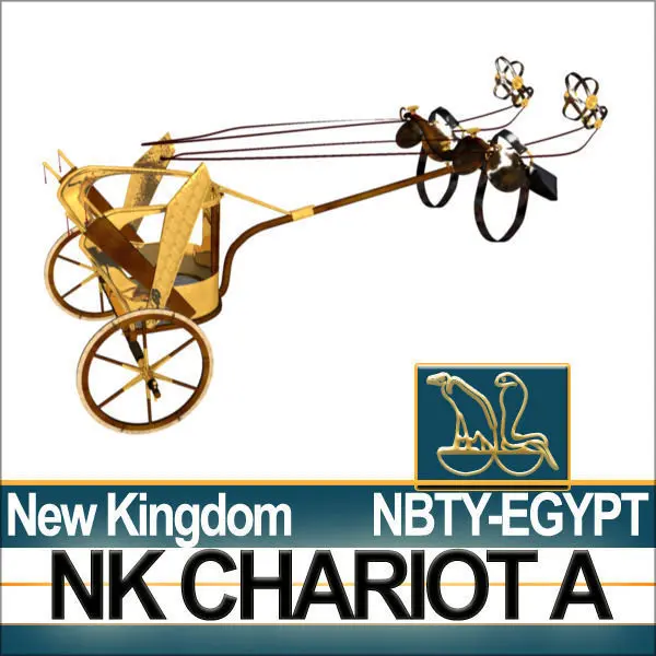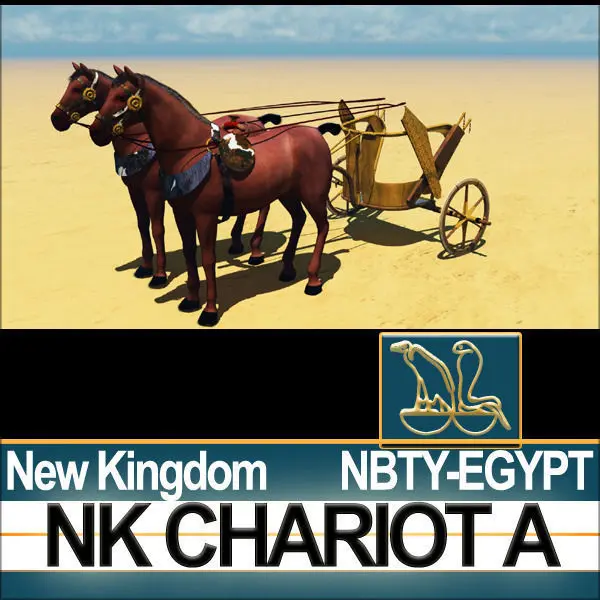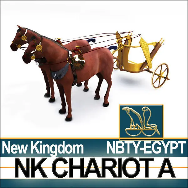 Ancient Egyptian New Kingdom Chariot A [transport, war, hunt]. Complete Horse Harness System and Reins. Reins and Harness Ropes also with Animation ready C4D NURBS. 24 & Alternate PhotoTextures. C4D, VUE6-7-8-9, 3DS, OBJ!_________________________________[The Horses you see in the images are Poser6 Horse rendered with a Photoreal Texture and are not included in this package. Please do not use Poser7 Horse for Ancient Egypt scenes, since Egyptian Horses belonged to a family very similar to the family of Arabian horses.]