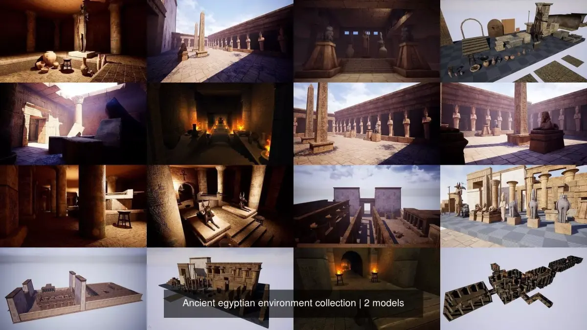 The asset collection includes two modular environments of ancient egypt.Demo scenes were built in Unity and Unreal Engine.Also included are folders with textures and FBX mesh files.