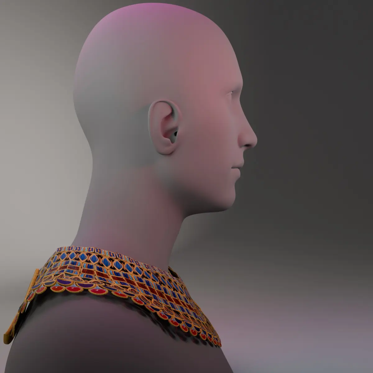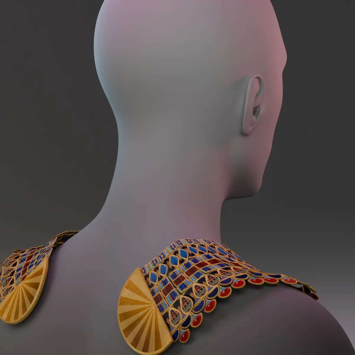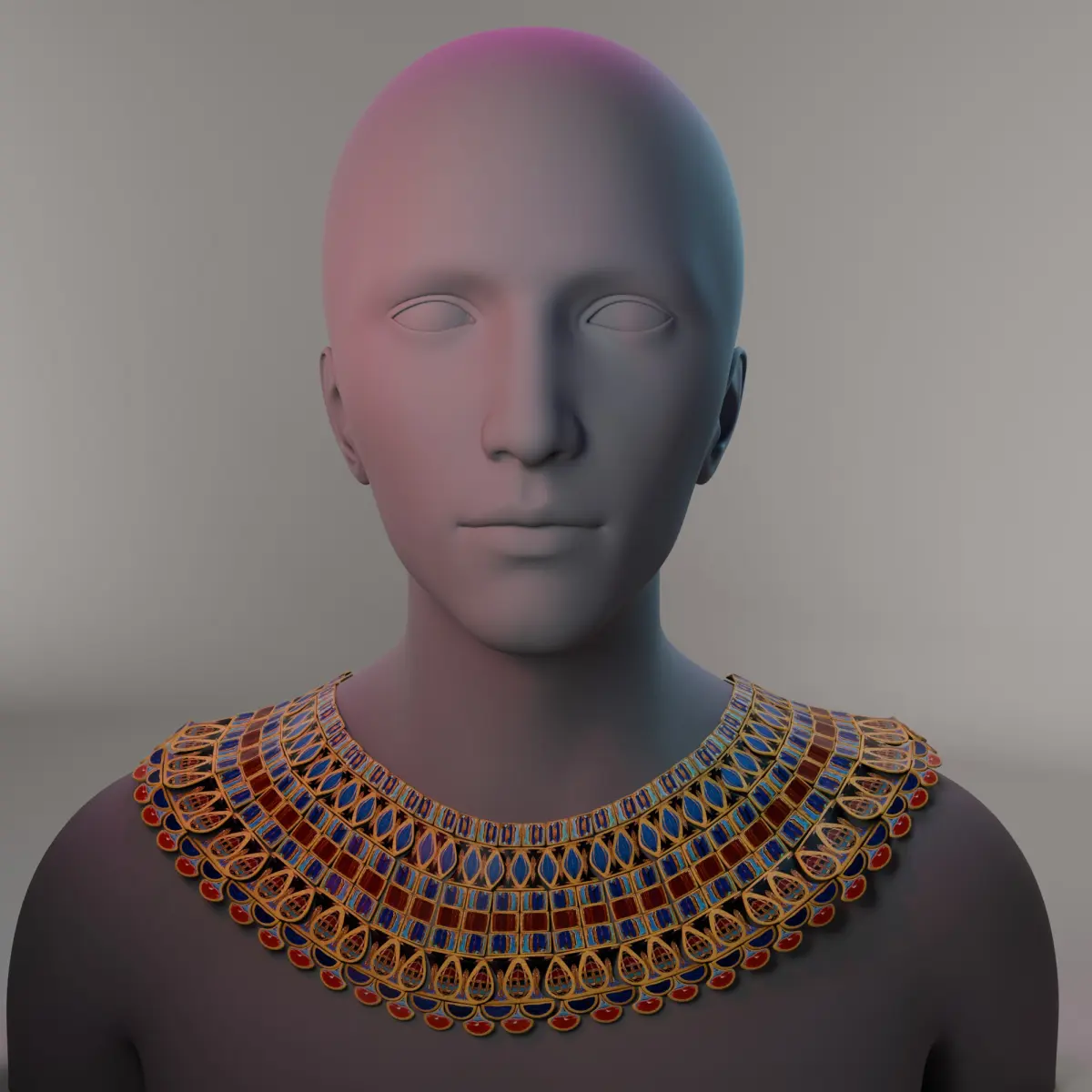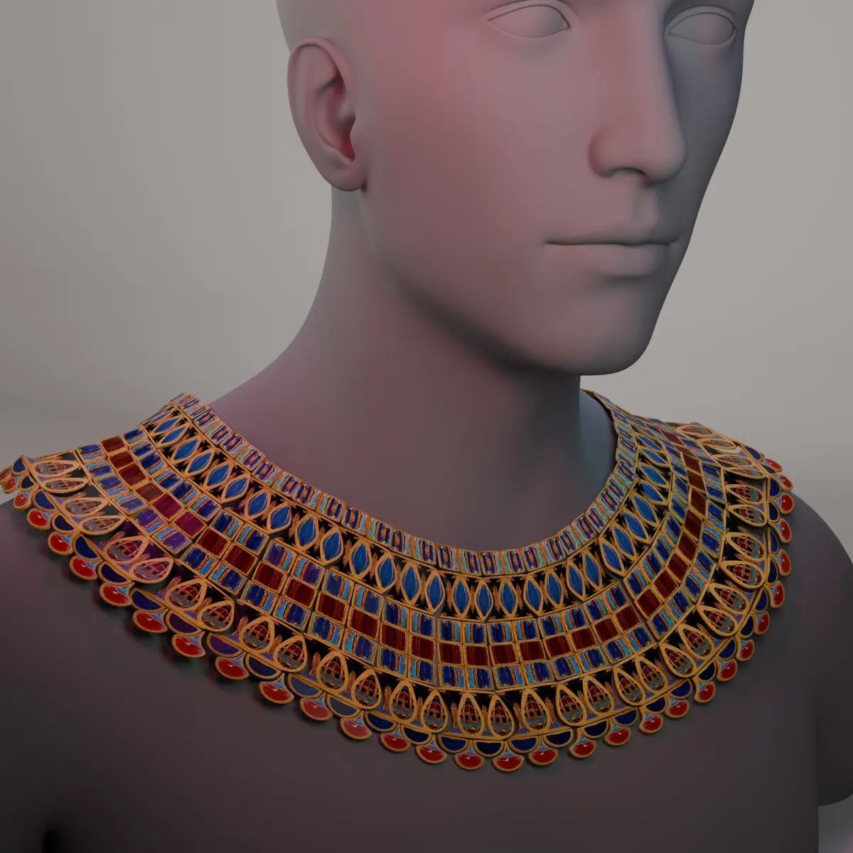 Immerse yourself in the grandeur of ancient Egypt with this stunning gold necklace. Inspired by the opulent jewelry worn by pharaohs and nobles, this piece features intricate geometric patterns and dazzling gemstones. The vibrant hues of lapis lazuli, carnelian, and turquoise create a mesmerizing visual spectacle, while the delicate goldwork adds a touch of regal elegance. Whether you're dressing for a special occasion or simply want to add a touch of history to your wardrobe, this necklace is a timeless masterpiece.