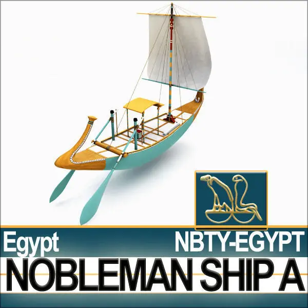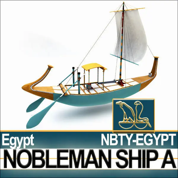 Ancient Egyptian Nobleman Ship Model A. 2 ships ready for both South and North travel. Real ropes and Sails, and with Animation ready NURBS. 34 & Alternate PhotoTextures. And Naval Props Models. C4D, VUE6-12, 3DS, OBJ!____________________________________Ancient Egyptian Nobleman Ship Model A with real Ancient Egyptian decorations, according to the ancient Egypt wall paintings and the archaeology evidence.The Nobleman Ship was a small type of ship and was used on the Nile, in the oasis, lakes [Fayum], in the wetlands and lagoons.