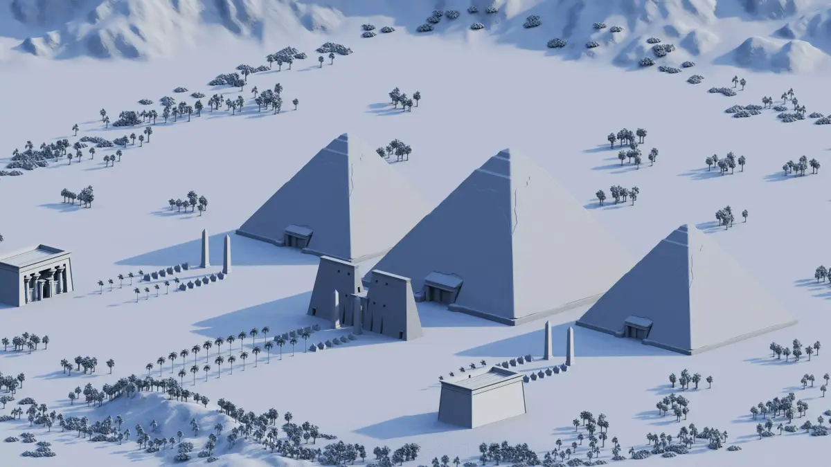 12 pyramids, 6 temples , 48 houses ,Obelisk , 18 mini pyramidstextures