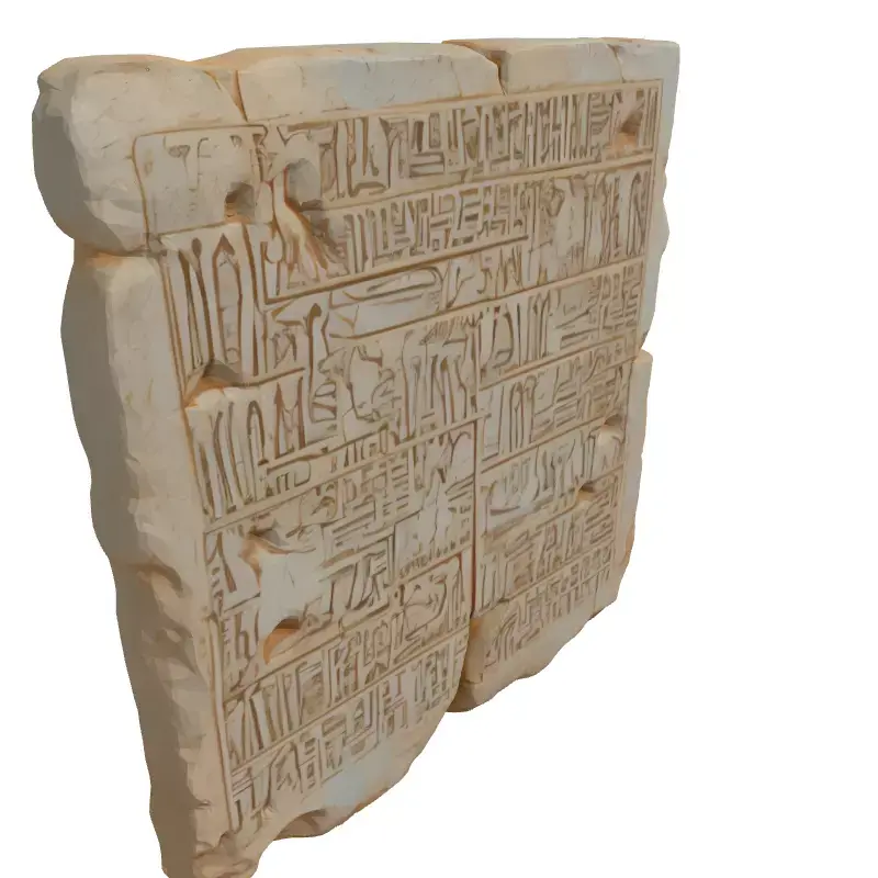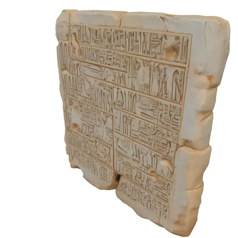 This highly detailed 3D model of an ancient Egyptian stone tablet showcases intricate hieroglyphic carvings, perfect for adding historical authenticity to your projects. Ideal for game development, architectural visualization, museum exhibits, or educational resources, this model offers versatility and visual appeal. Available in GLB, OBJ, FBX, and STL formats, it caters to various software and platforms. Optimized for both real-time applications and static renderings, it balances performance and visual fidelity. Key features include clean topology, UV unwrapped surfaces, and PBR textures for realistic material representation. The model's level of detail makes it suitable for close-up shots and high-resolution renders, while its optimized geometry ensures efficient performance in game engines and other real-time environments. Whether you're recreating an ancient Egyptian tomb or designing an immersive historical experience, this stone tablet model is an invaluable asset.