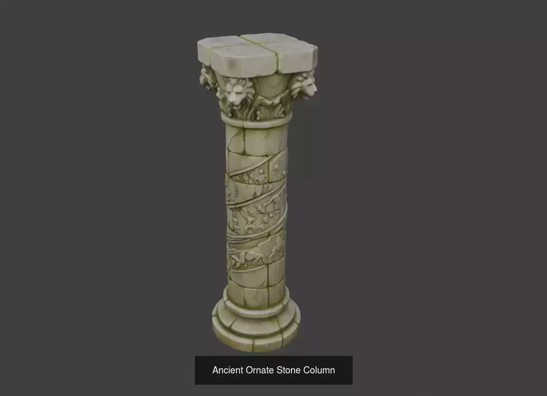 From a technical standpoint, every asset is built with clean topology and optimized geometry, ensuring excellent performance in real-time engines such as Unreal Engine and Unity. The models are fully game-ready, using PBR workflows with high-quality textures that respond naturally to dynamic lighting. Surface details such as chipped stone edges, engraved patterns, moss coverage, and subtle cracks are carefully sculpted and baked to preserve visual fidelity without unnecessary polygon overhead.