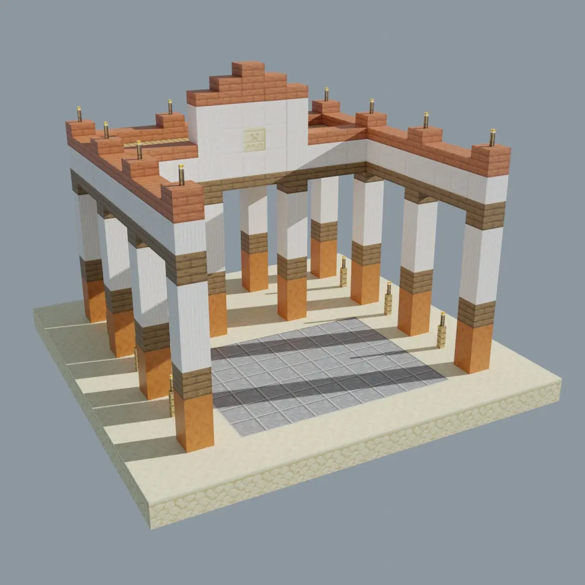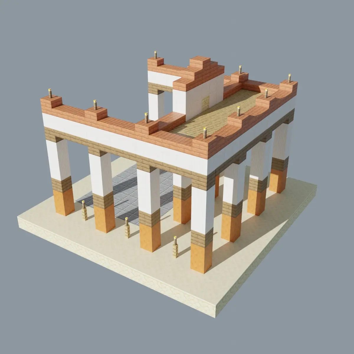 The model is created from cubes in ancient style in Blender.