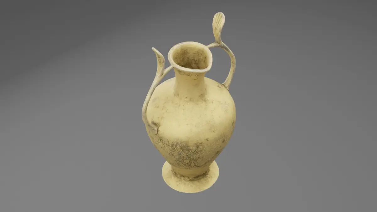 Ancient Golden Urn 3D ModelA regal Ancient Golden Urn with a slender, elongated shape and a rounded base, featuring an intricately carved surface with floral and mythical designs. The urn's neck tapers gracefully upward to a small opening, crowned with a detachable lid adorned with a small, ornate finial. The polished gold surface is subtly weathered, displaying fine scratches, patina, and occasional dents that evoke its long history. Rendered in 4K textures, the model emphasizes fine detailing and realistic metallic reflections. Available in Blend, FBX, OBJ, and DUF formats, it is ideal for historical recreations, treasure scenes, or ceremonial settings in 3D projects.