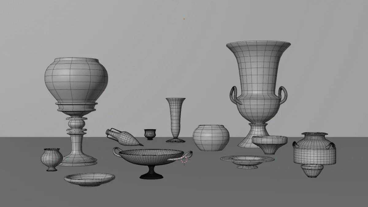 13 Ancient Greek and Roman vases made in Blender.Rendered with Cycles engine..blend, .obj, .fbx, .dae, and .stlWireframe and UV photoZip file.
