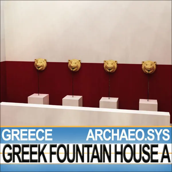 Typical Ancient Greek Fountain House A, complete with 6 sculpted Fountain heads. 25 Textures. HD and LoPoly Roof. HiDetails. Faithful accurate Reconstruction. C4D, 3DS, OBJ from VUE6 to VUE11.__________________________________________Typical Ancient Greek Fountain House A, with sculpted bronze Lion Heads.