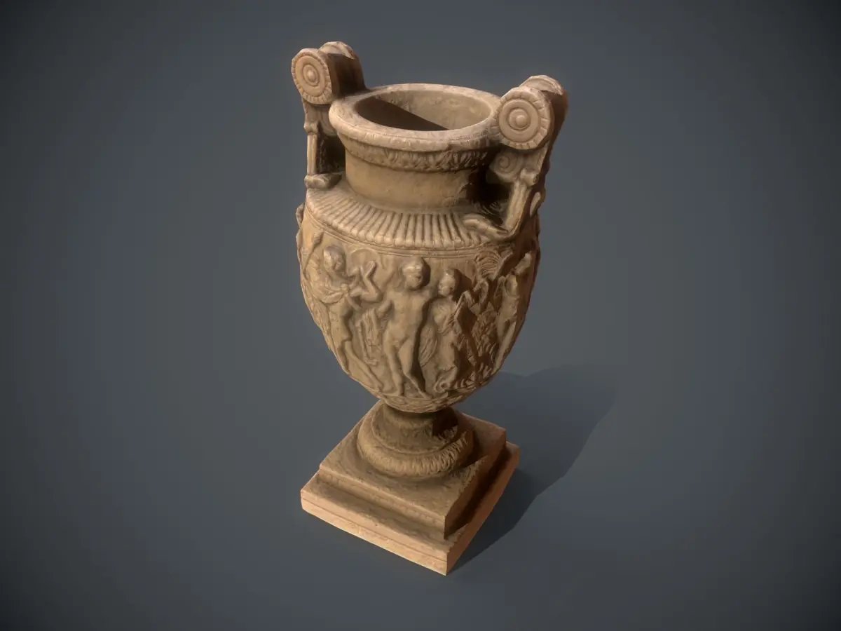 Ancient Greek Roman Vase low-poly game-ready photorealistic 3D model. Low-poly real-time game engine asset. 4 LOD levels