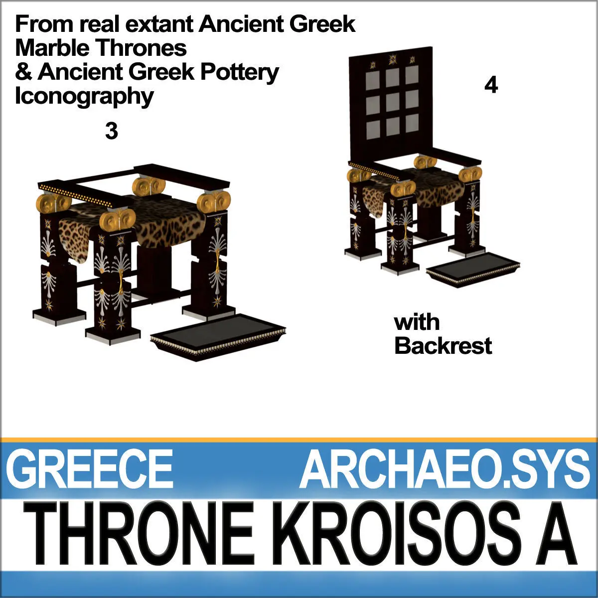 Typical ancient Greek Throne: type used as throne of king Kroisos (Croesus, extra-rich king of Lydia [c. 585-c. 546 BC]), as from ancient representations.