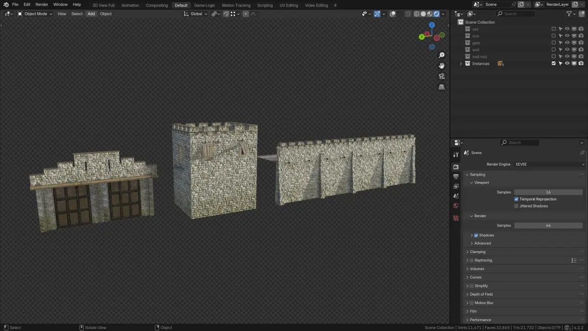 For my short films Heroes of Bronze I made these walls to use in the shots depicting ancient Greek fortifications.I share them here for you to use on your projects.You can assemble them in various shapes and variations.
