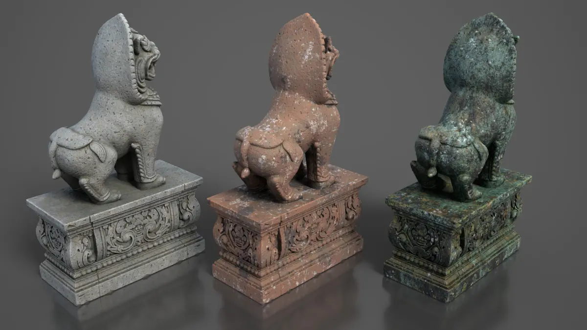 • Textures: 3 color variations – Gray, Terracotta, and Moss - Maps included: Base Color, Normal DirectX, Roughness, Ambient Occlusion, Resolution: 4096 x 4096 (JPG format)