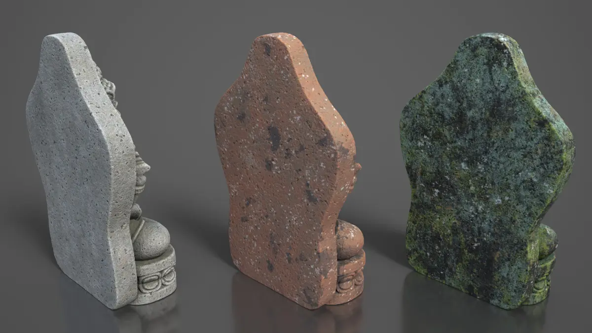 • Textures: 3 color variations – Gray, Terracotta, and Moss - Maps included: Base Color, Normal DirectX, Roughness, Ambient Occlusion, Resolution: 4096 x 4096 (JPG format)
