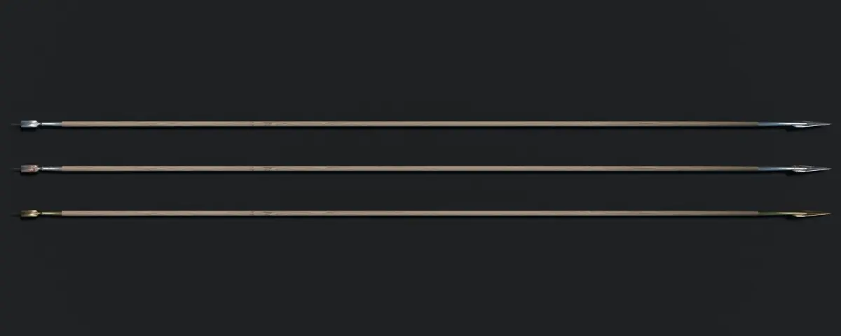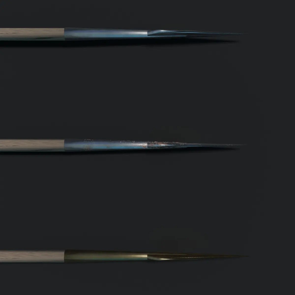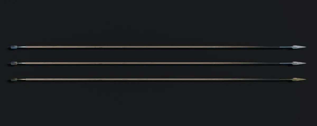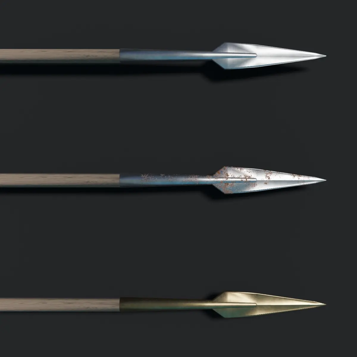 A low poly ancient Macedonian sarissa pike model with steel, rusted steel, and bronze textures.