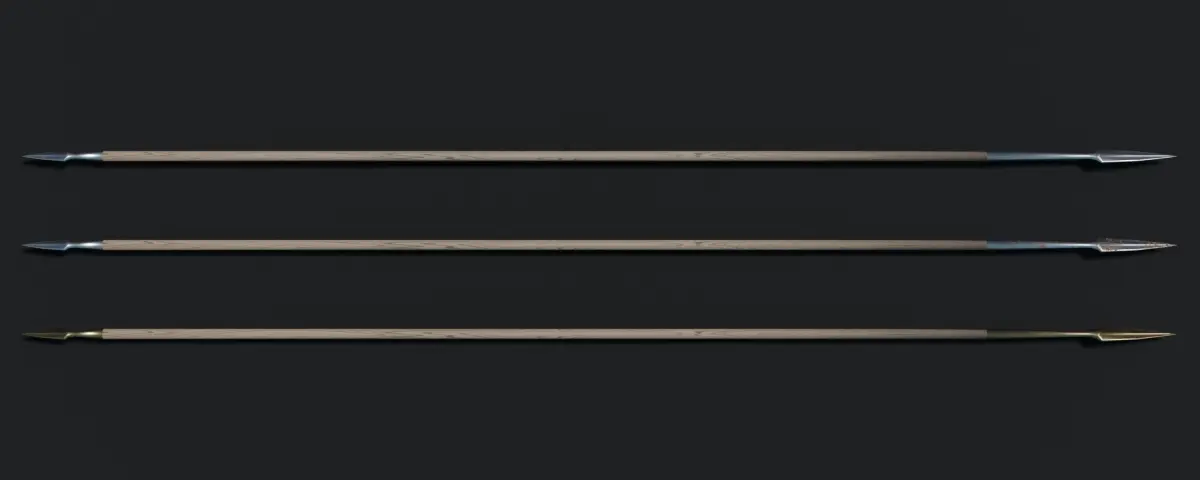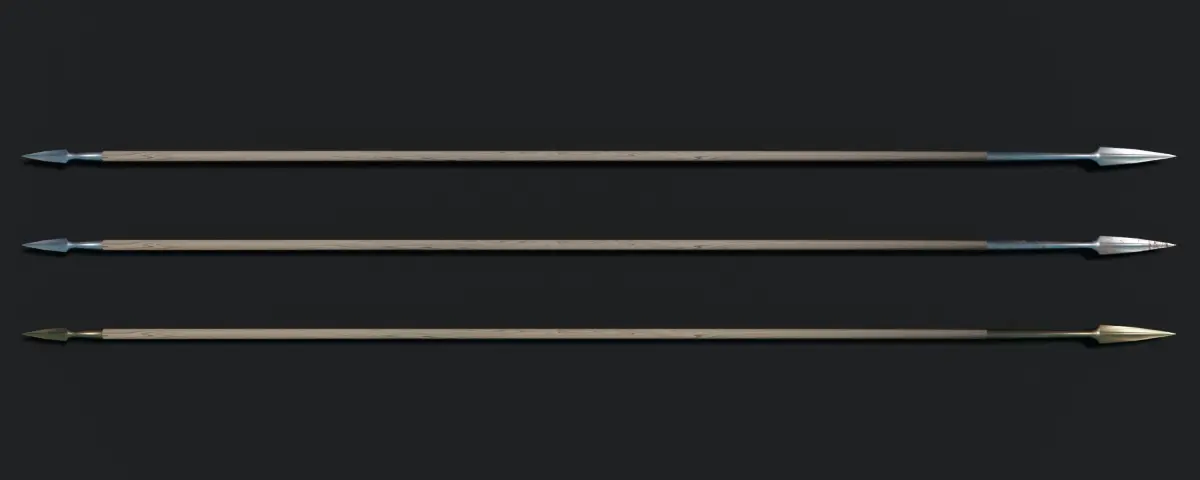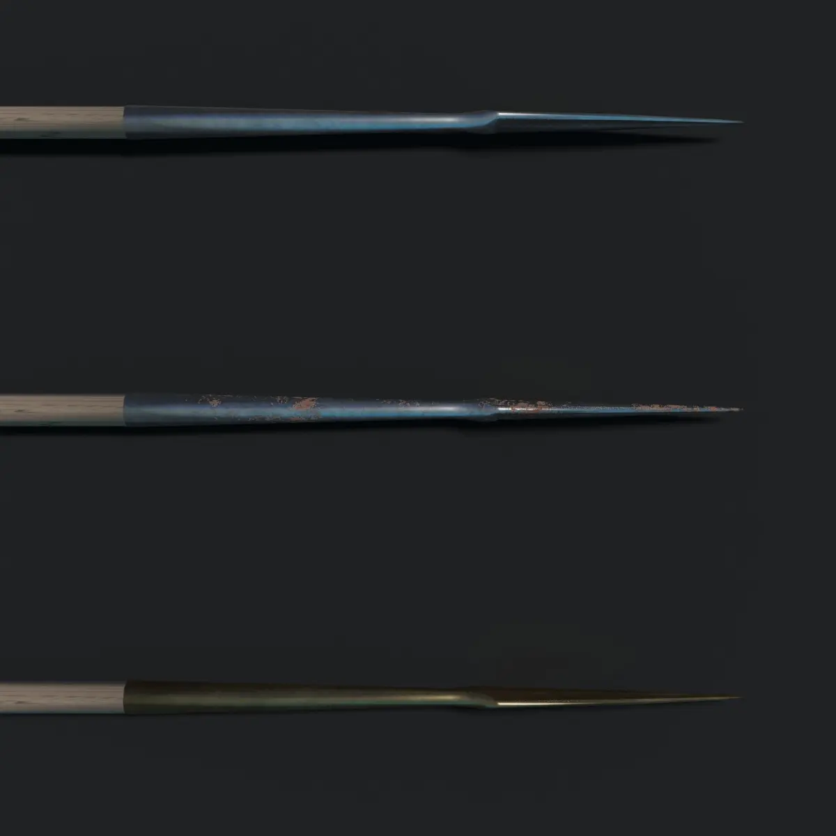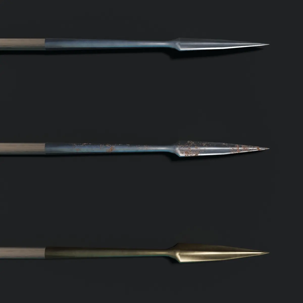 A low poly ancient Macedonian xyston lance model with steel, rusted steel, and bronze textures.
