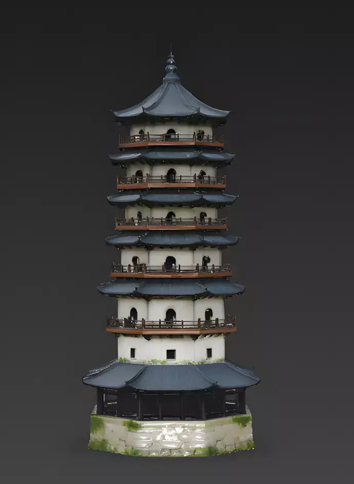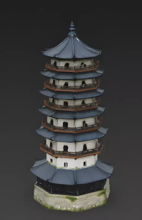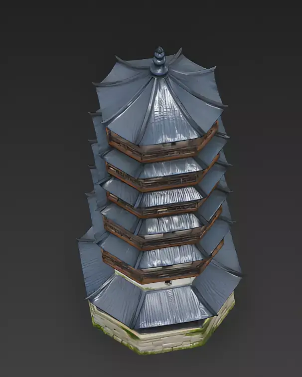 The Overall Concept This asset is a towering, multi-story structure known as a pagoda. Historically used to store sacred scriptures or relics, its height makes it a perfect landmark for players to navigate by in a large city or mountain map.
