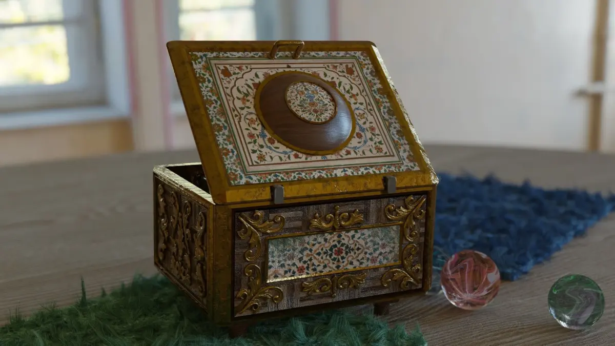 18th century style music box.This music box will be very useful to you to create an old atmosphere for your video game projects, movies.It can perfectly be used in the foreground given its texture quality, on average the textures are in 4k.